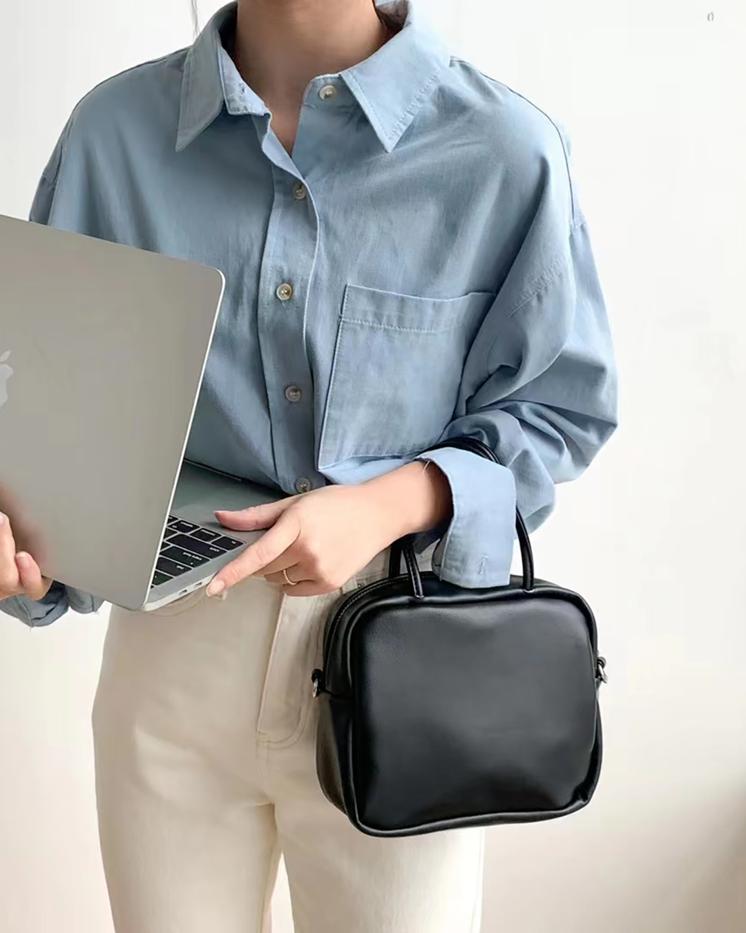 Square leather cross body bag , comes in different colors