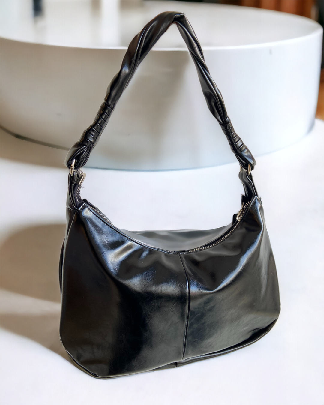Black patent bag that comes with two leather handle so that you can wear it as a cross bag or a shoulder bag