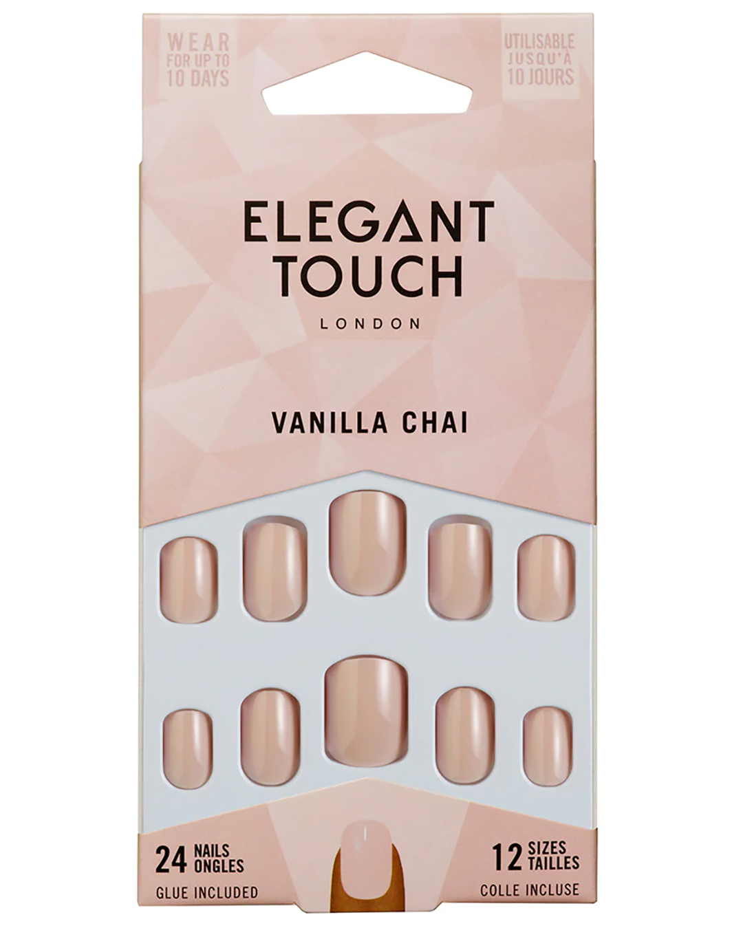 With up to 10 days of wear, Vanilla Chai gives you a no-frills manicure without the mess of wet polish or drying time. Inside, you’ll find 24 glue-on nails in 10 different sizes to fit each fingernail perfectly.