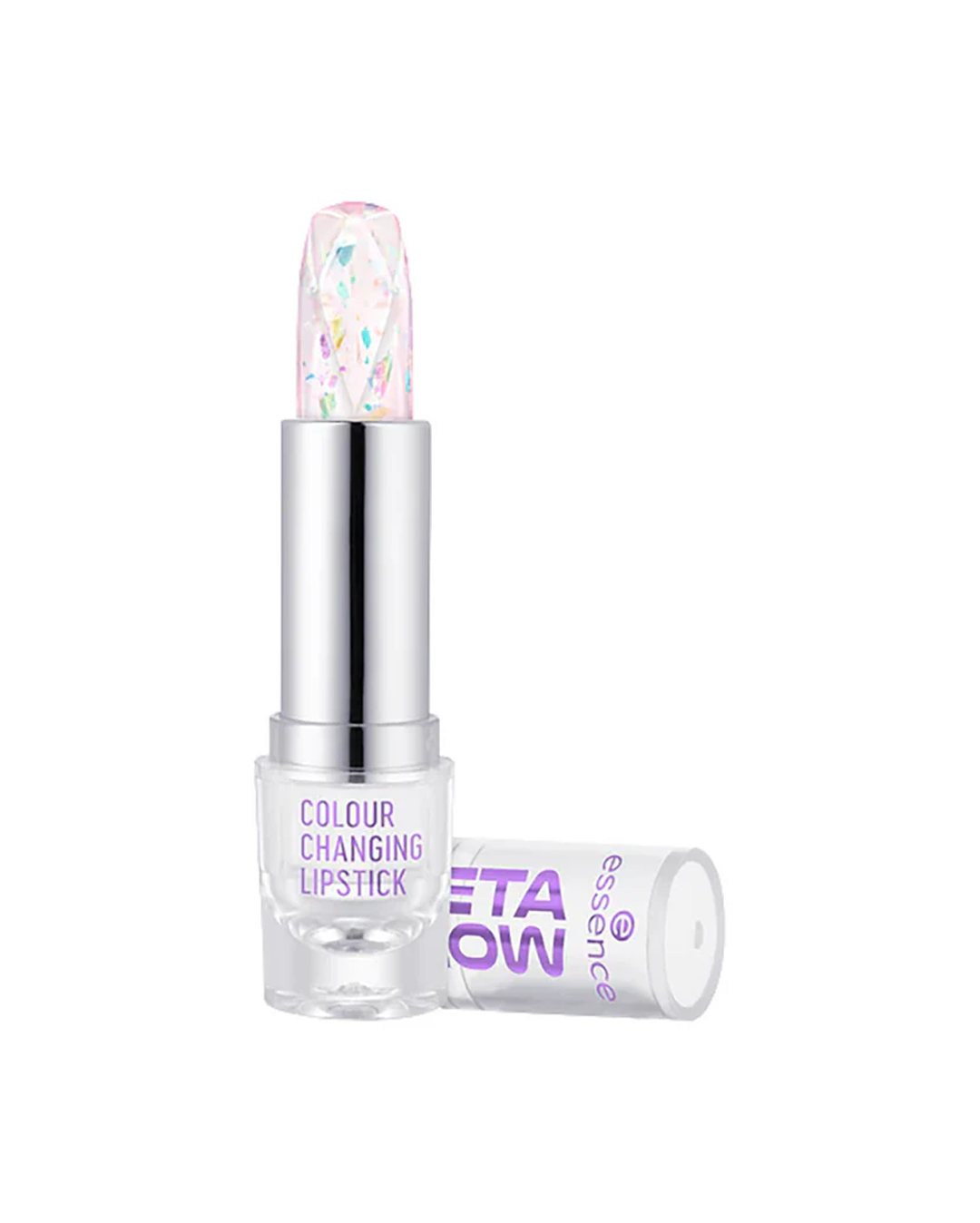Get ready for the ultimate wow-moment with essence Meta Glow Color Changing Lipstick! Watch the magic unfold as its pH-reactive formula crafts a unique soft pink shade tailored to your lips. Universally flattering, this lipstick enhances your natural lip color. Dive into the surprise of a semi-transparent texture adorned with holo flakes. Easy to apply, comfortable to wear—experience the magic of individualized lip perfection!