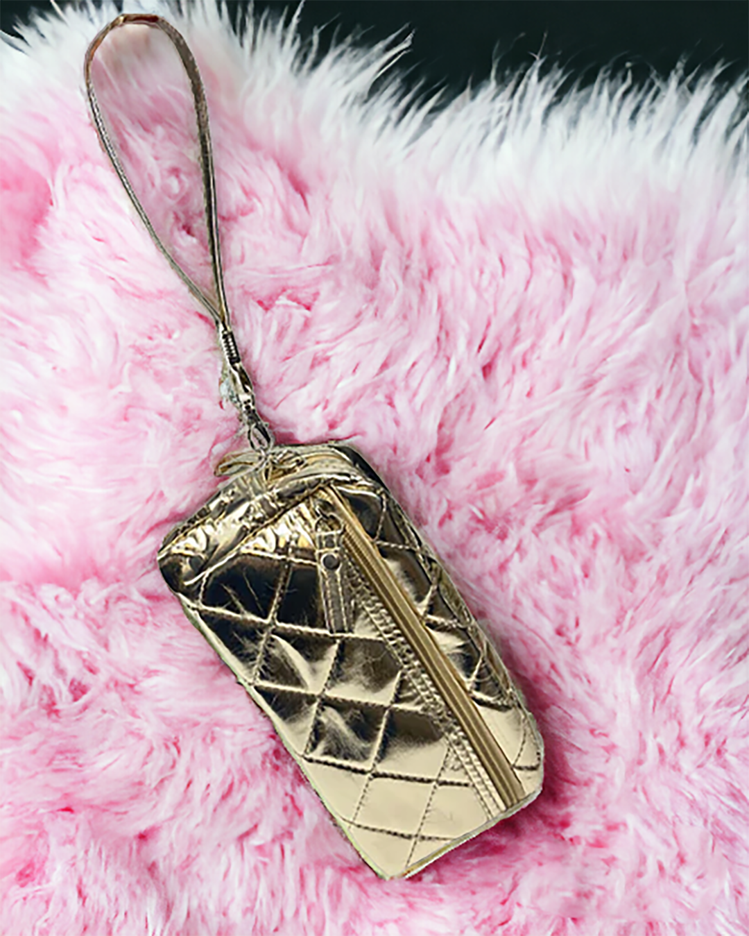 Metallic gold makeup bag