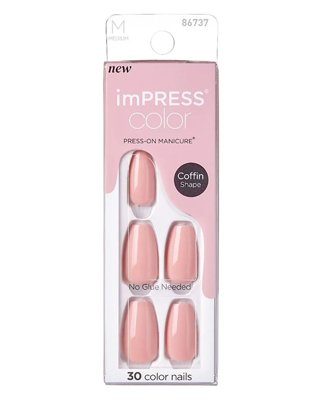 ImPRESS press-on gel nails look like custom nail art, but they literally take minutes to DIY. Patented dual-layer adhesive provides Super hold that stays put and stays perfect. The false nails are Glue Free, No Dry Time Needed!