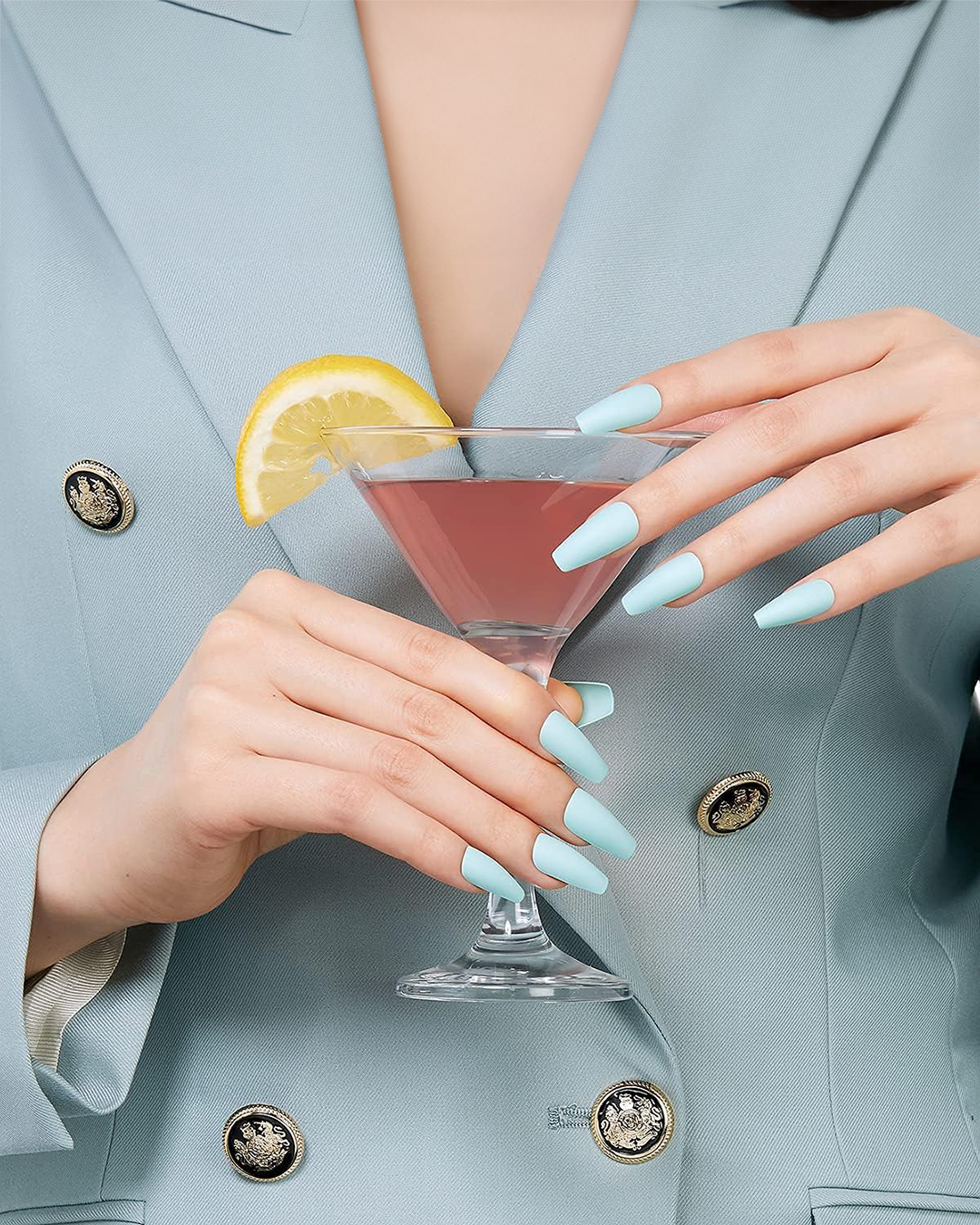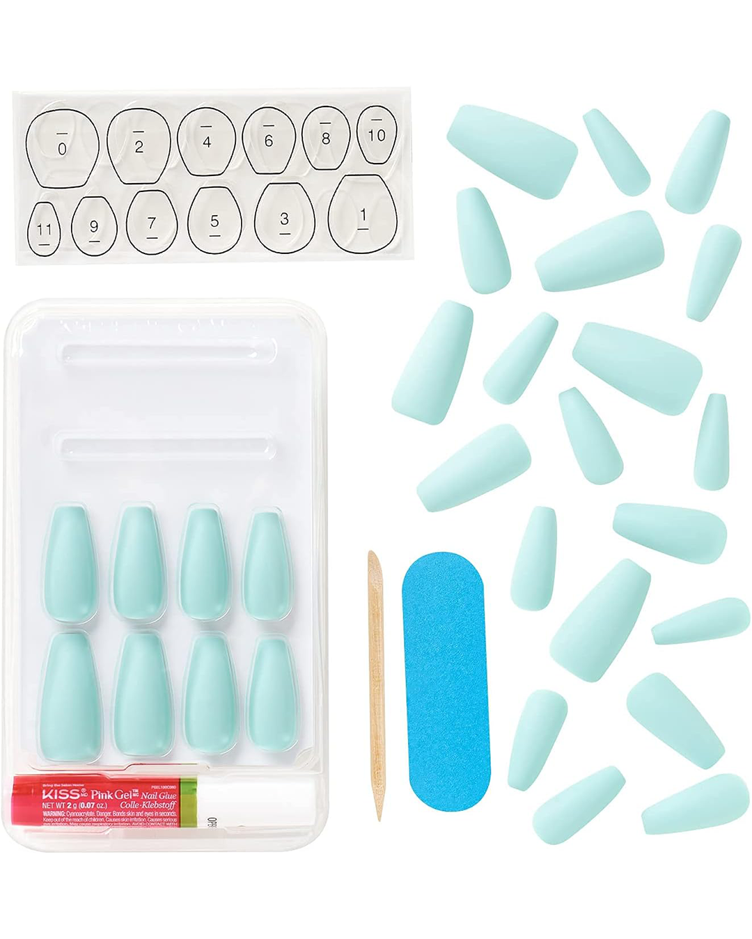 - High Arch Salon Style: Like the high arch look of long salon sculpted acrylic false nails, these ready-to-wear versions are in trendsetting colours, in long coffin & stiletto shapes; 28 nails, 24 mega adhesive tabs, pink gel glue, manicure stick, mini file