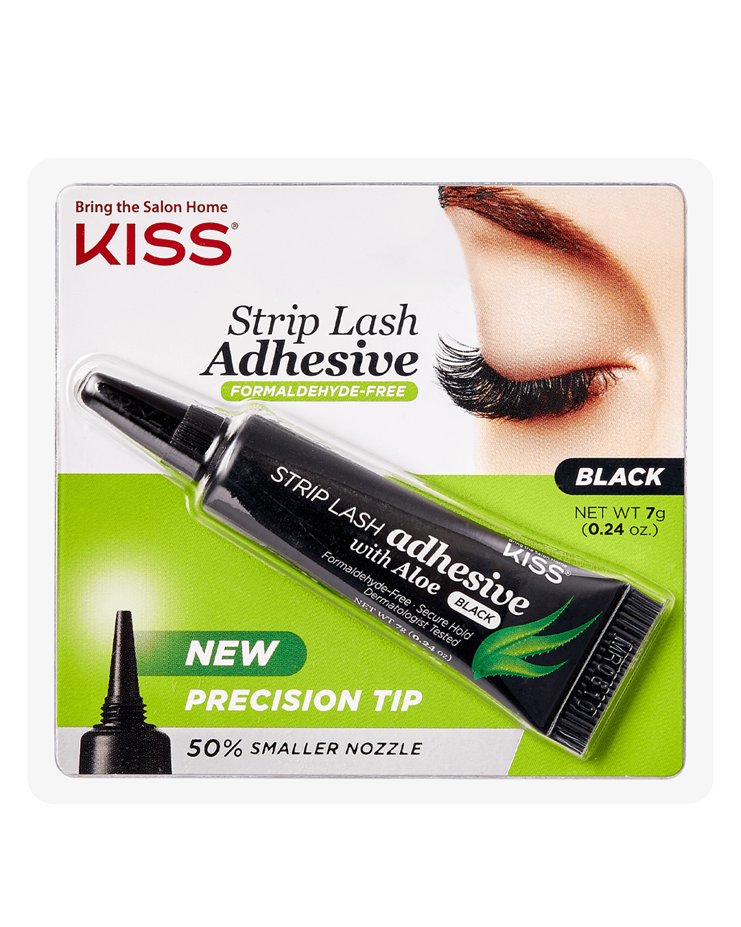 KISS Strip Lash Adhesive-Black doubles as eyeliner. Get a long-lasting lash look with a strong hold and gentle formula. Secure your longer, fuller lashes with aloe-infused glue with strong-hold ability.