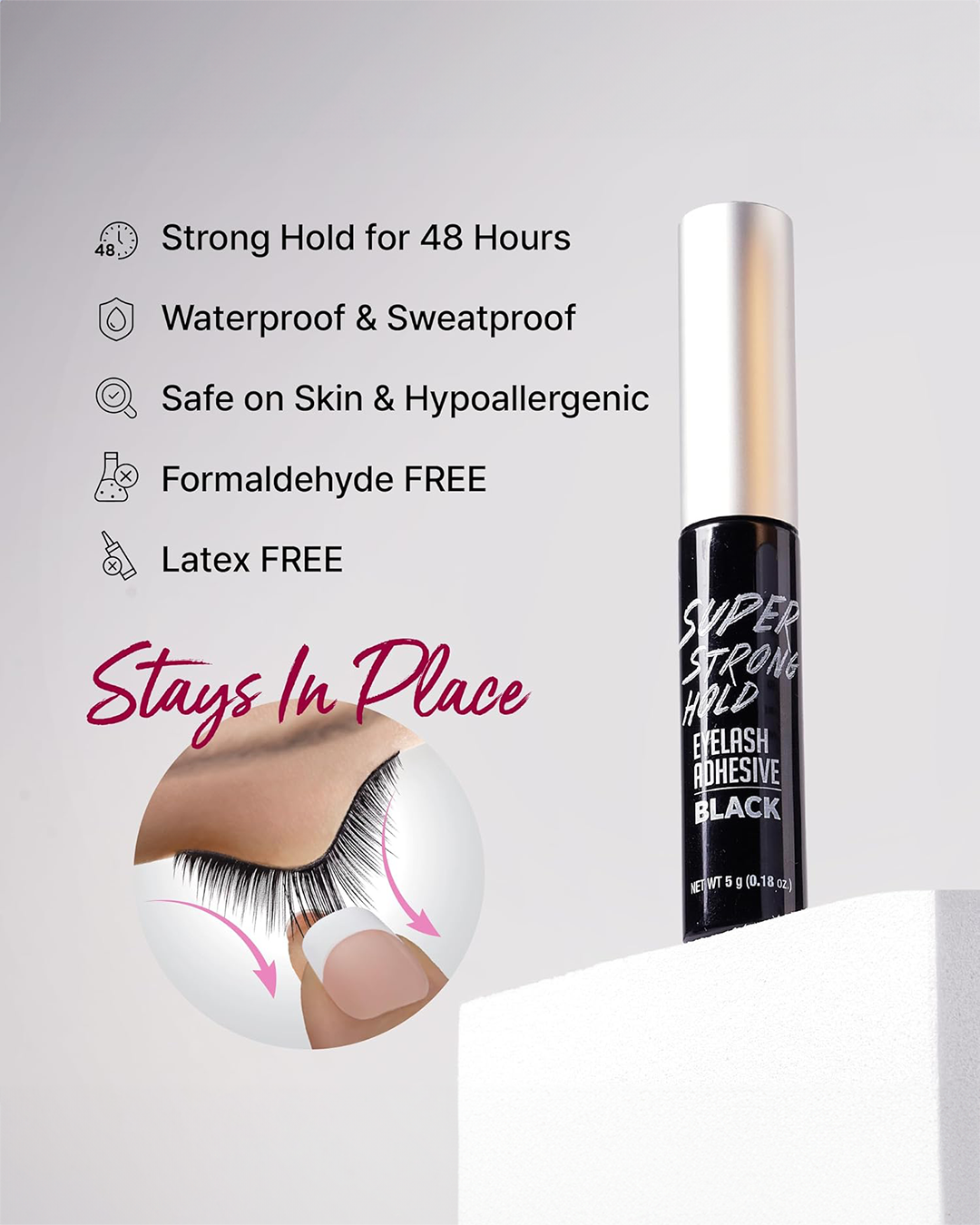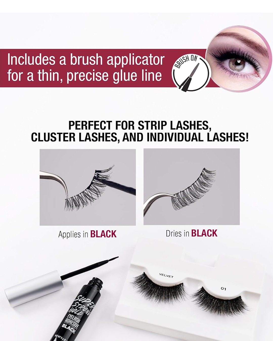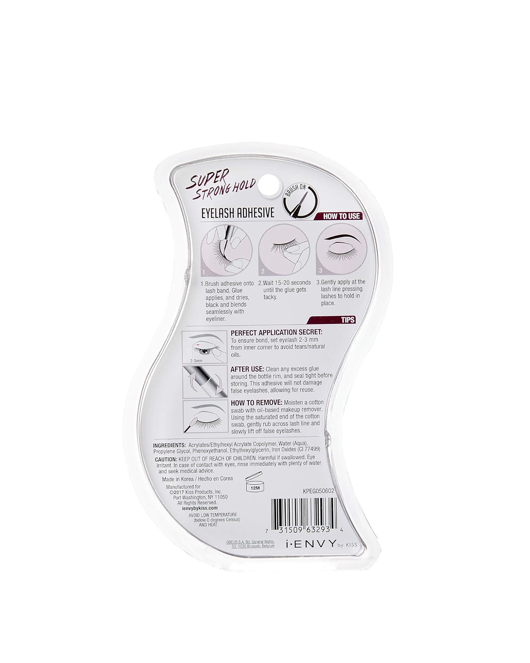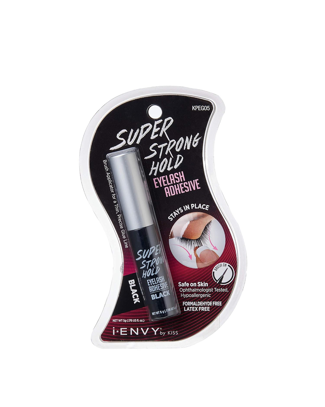 i•ENVY Super Strong Hold Eyelash Adhesive, Waterproof, 48-Hour Long-Lasting Lash Glue, Latex-Free, Hypoallergenic, Quick-Drying with Brush-On Applicator for Strip Lashes (Black, 1 Pack)