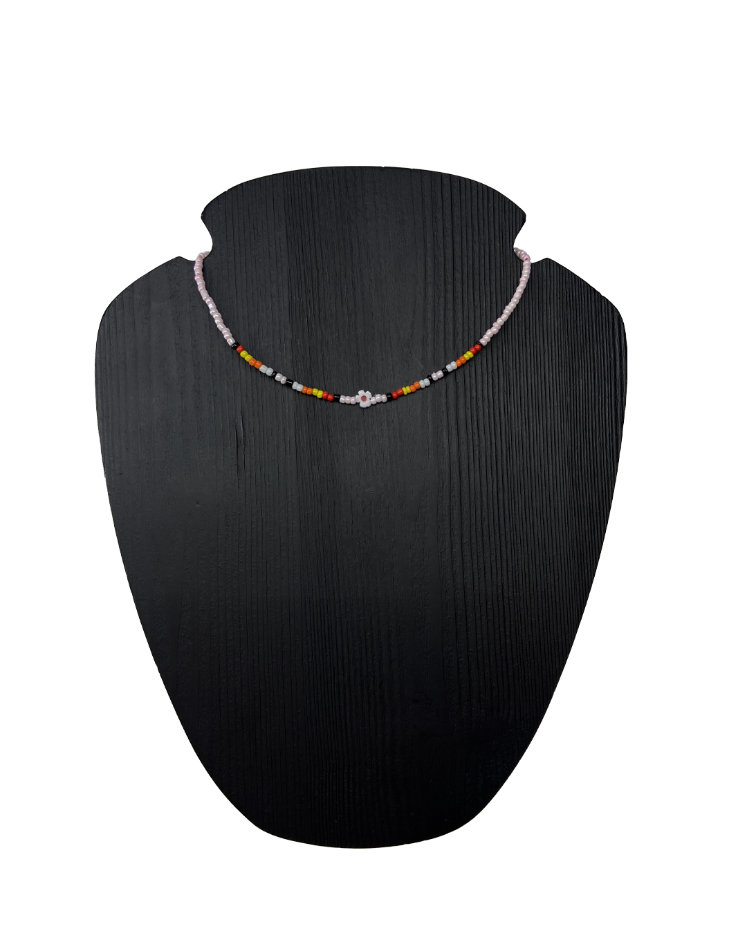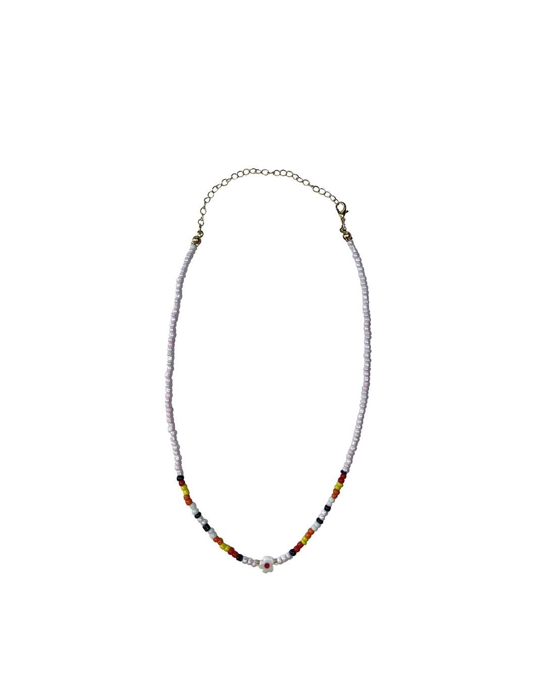 Light pink and colored beads gold necklace with a flower
