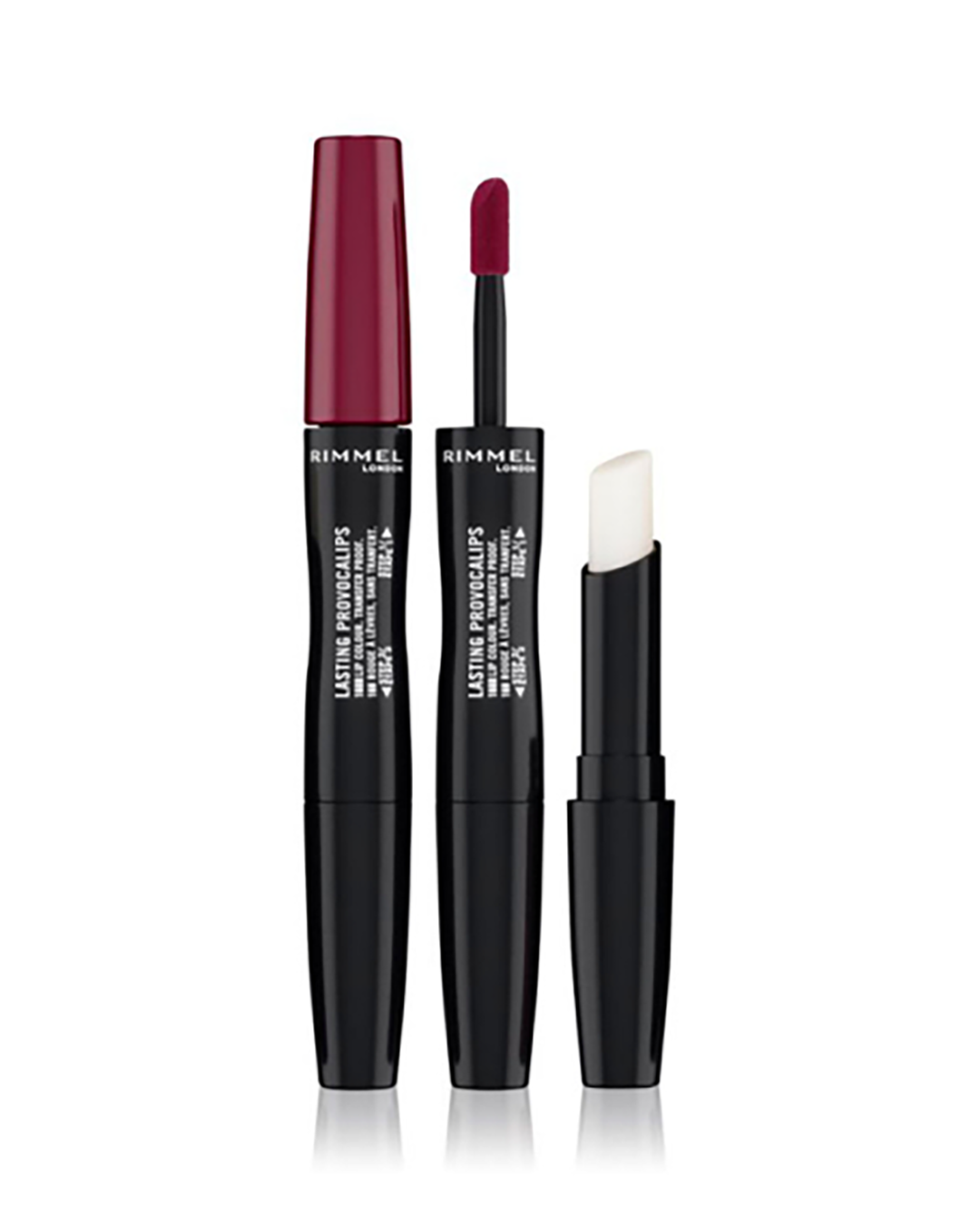 Rimmel's Lasting Provocalips lipstick offers up to 16 hours of color. Wild without a trace! Kiss proof. Scratch proof. Some of its characteristics to highlight are its long duration, high pigmentation and its easy application. Soft and hydrated lips throughout the day. Step 1 (2.3ml): Apply the color and allow to dry for 60 seconds until the product sets. Step 2 (1.6g): Apply top coat to seal color, hydrate and add shine.