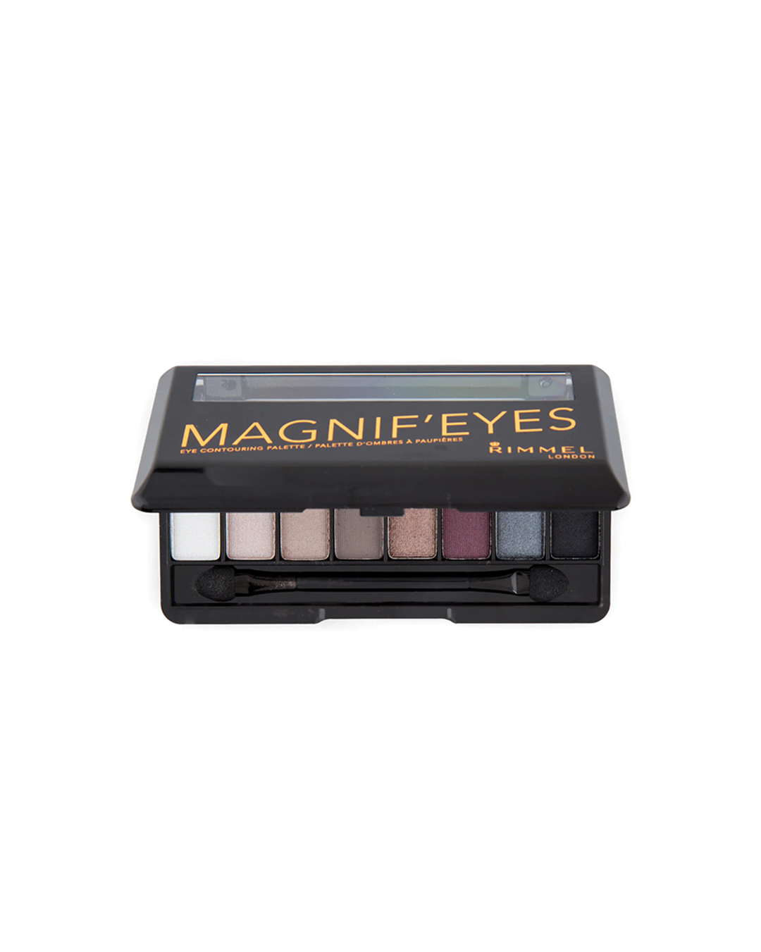 RIMMEL Magnif'eyes Eye Contouring Palette is an 8-shade all-in-one eyeshadow, liner and highlighter palette. Easily create endless combinations of looks with one eye kit. Featuring a mix of high-shimmer and matte shades, this palette is perfect for sculpting, shading and defining. The ultra-smooth blendable formula provides rich, intense and long-lasting colour that is crease and smear-proof and lasts all day long.