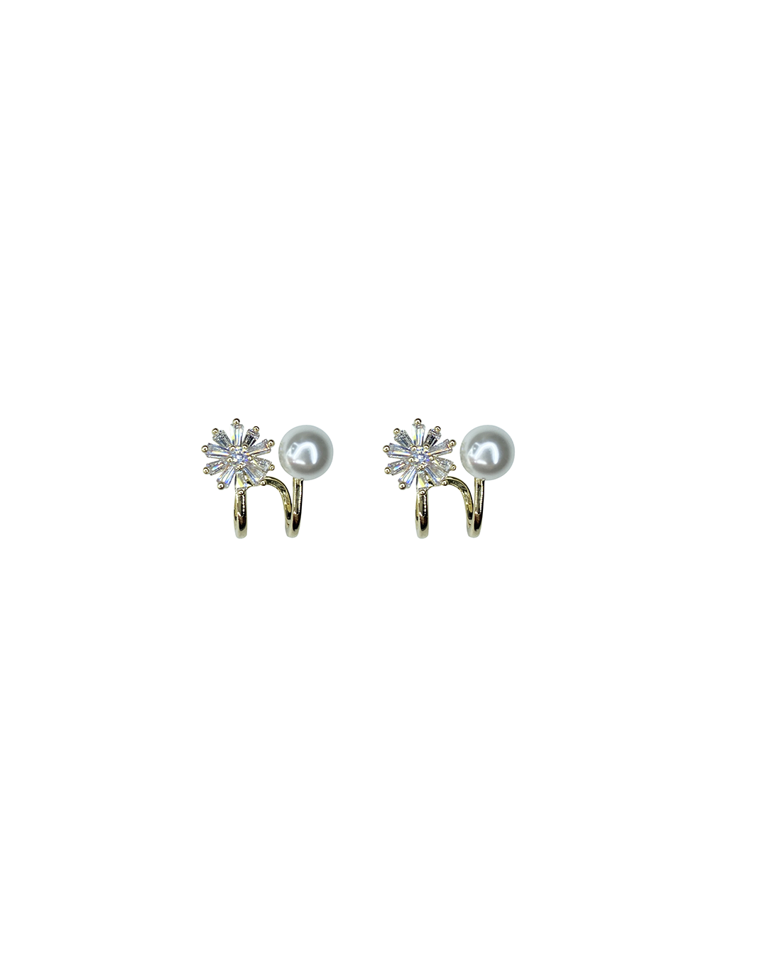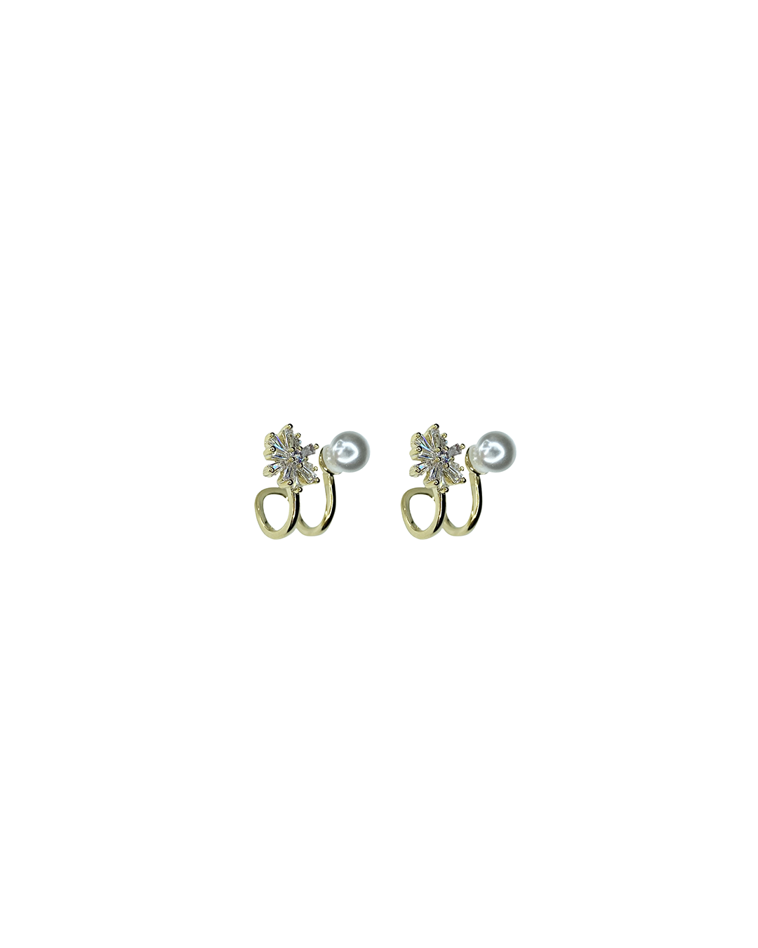 Flower and one pearl gold earrings