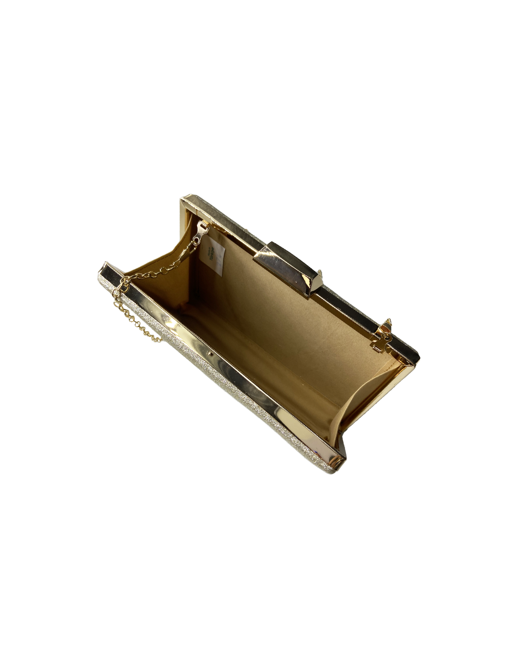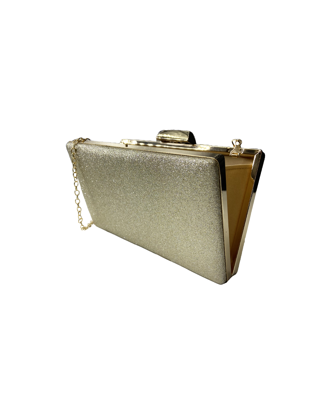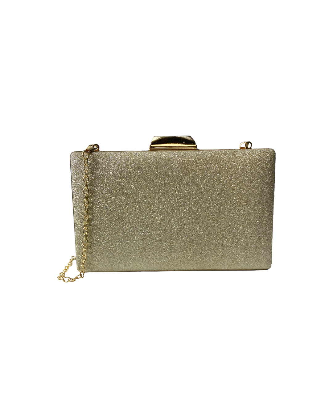 Gold glitter clutch with gold chain