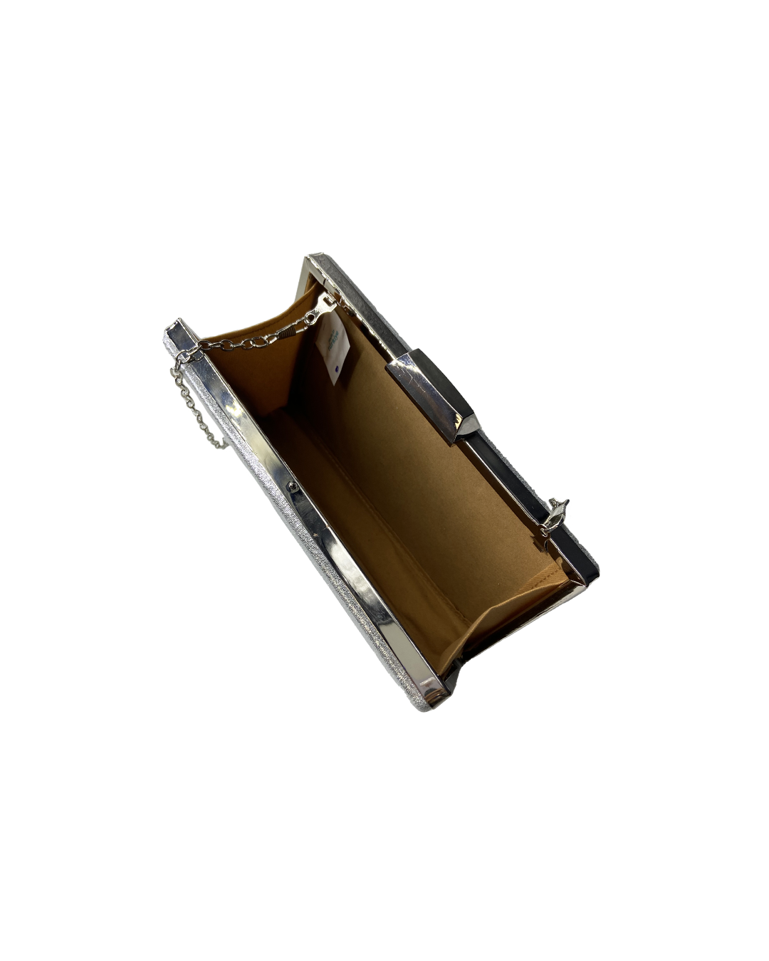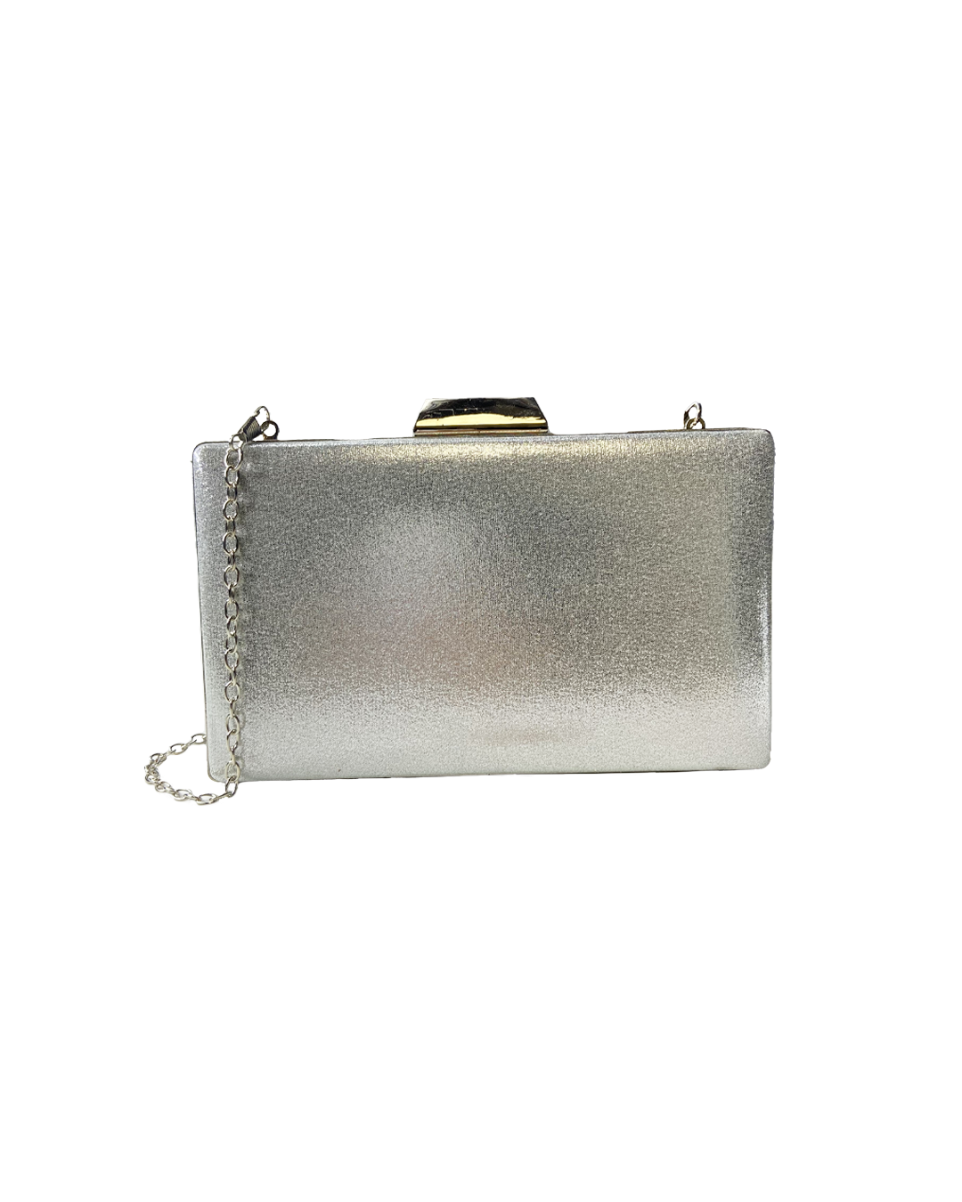 Silver metallic clutch with silver chain