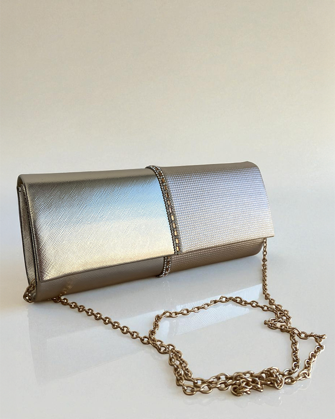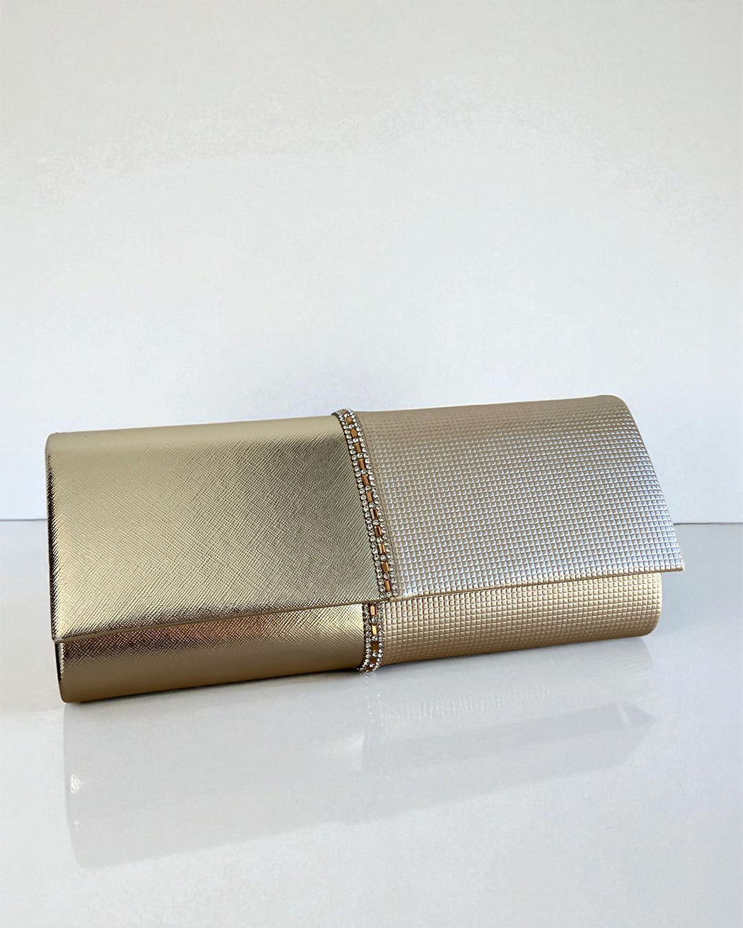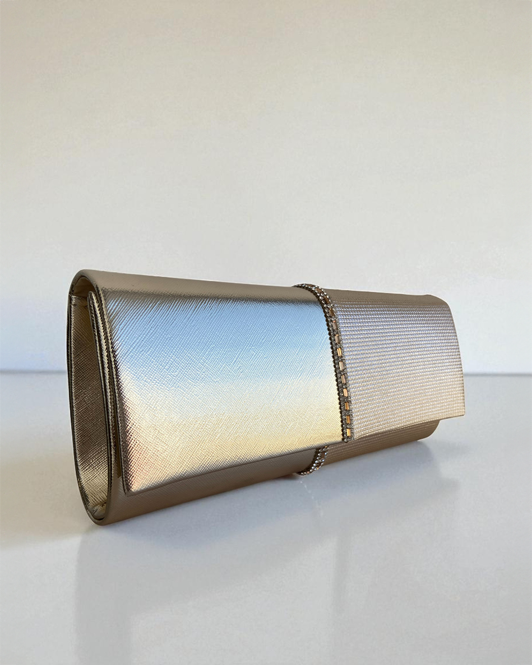 Gold leather clutch
