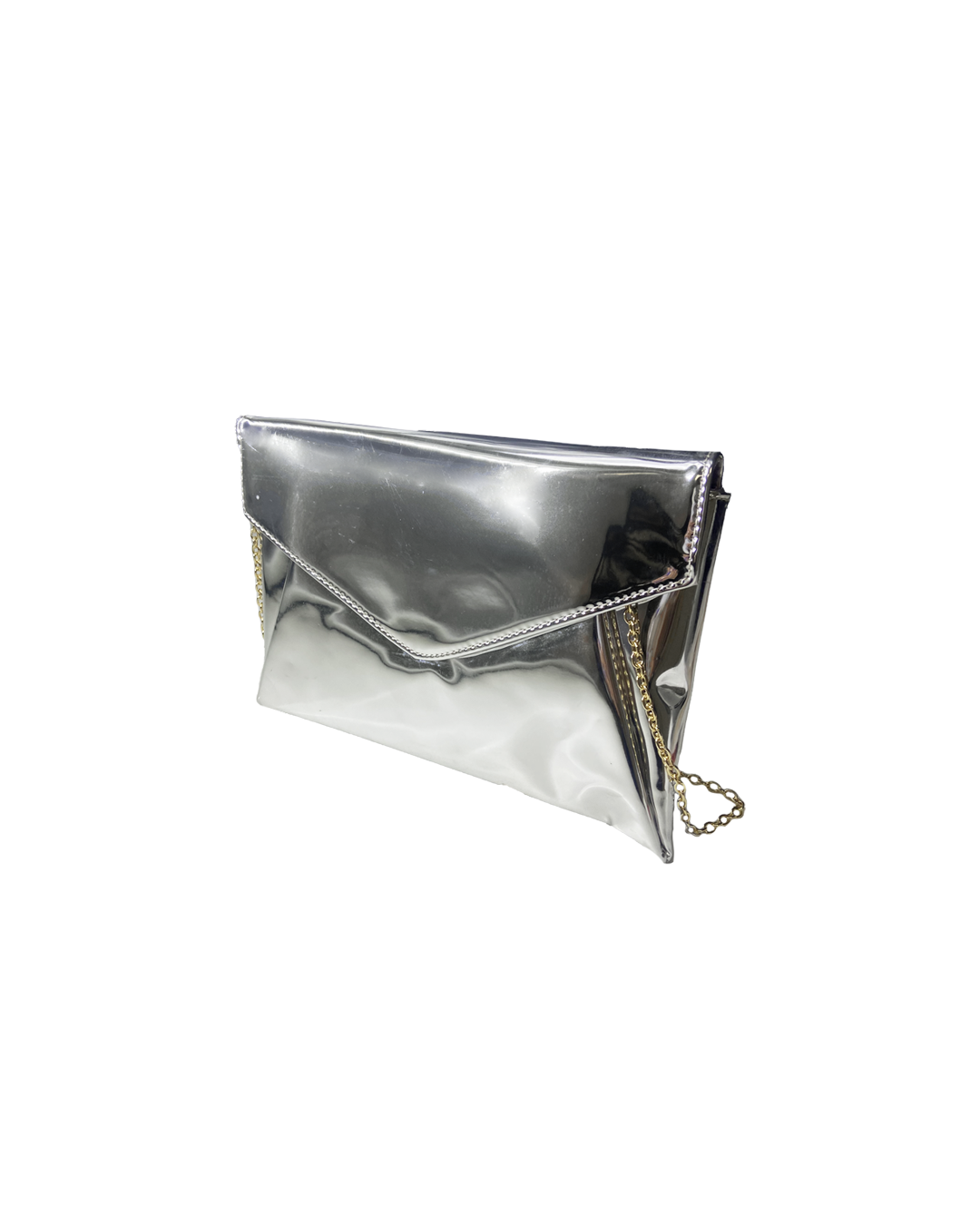 Patent shiny silver clutch with a gold chain