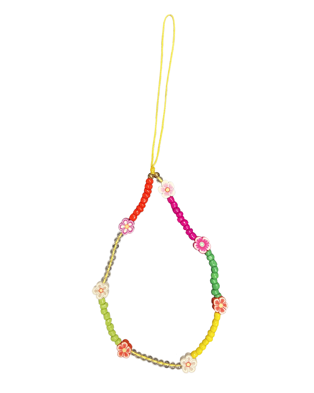 Pink , Green ,yellow , clear , pastel green and read beads with colorful flowers phone accessories